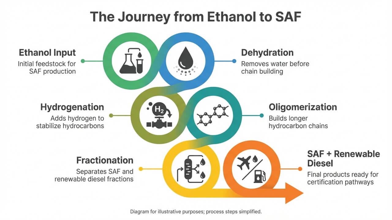 Our technology accepts diverse low-carbon ethanol inputs—agricultural residues, municipal solid waste, and even captured carbon—enabling global production that taps into local, sustainable feedstocks.